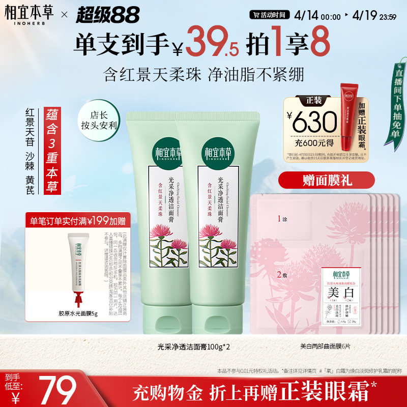 相宜本草红景天光采洁面膏清洁去角质男女士专用洗面奶国货老牌子