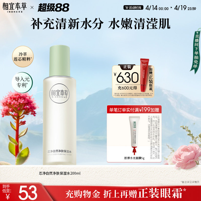 相宜本草芯净自然净肤保湿水爽肤水男女士专用清爽补水保湿控油水