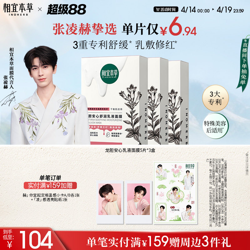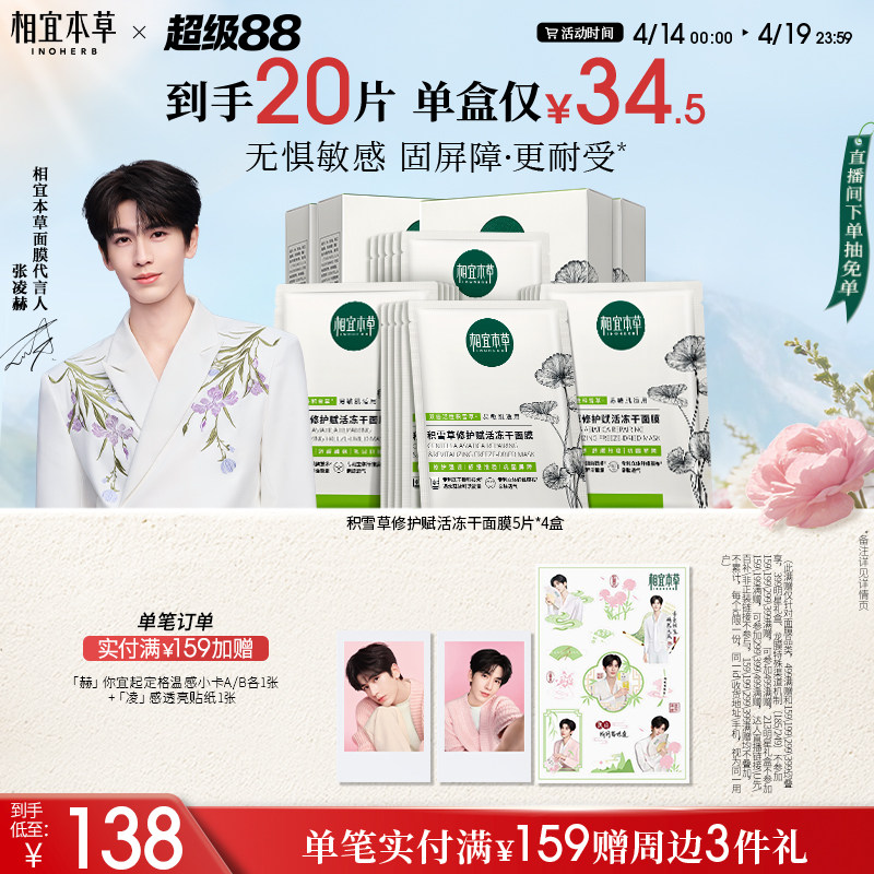 【张凌赫同款】相宜本草龙胆专研舒安修护冻干面膜补水褪红敏感肌