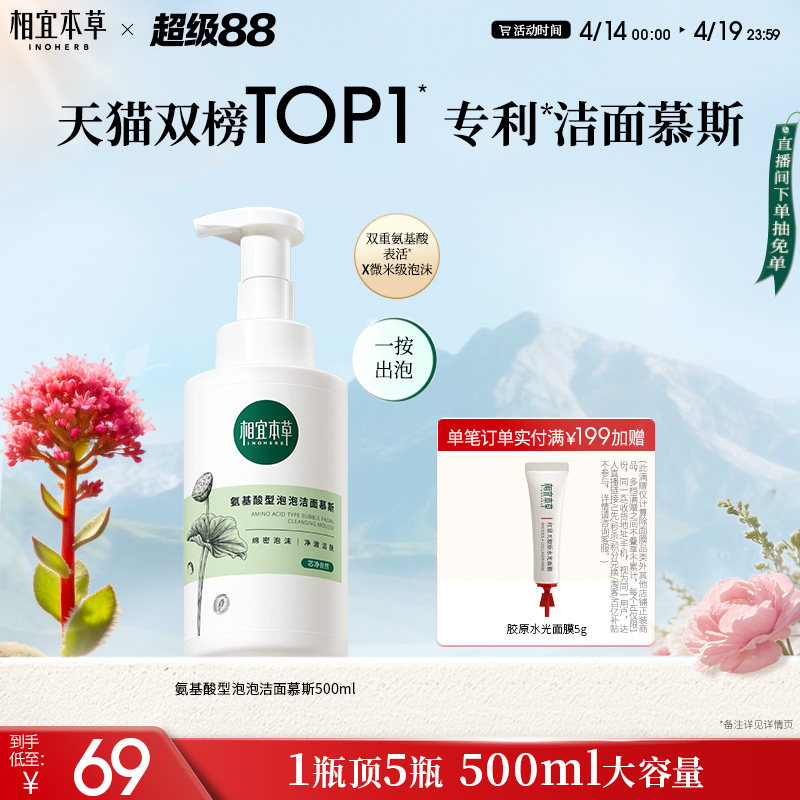 【500ml】相宜本草氨基酸洁面泡沫慕斯洗面奶大容量深层清洁