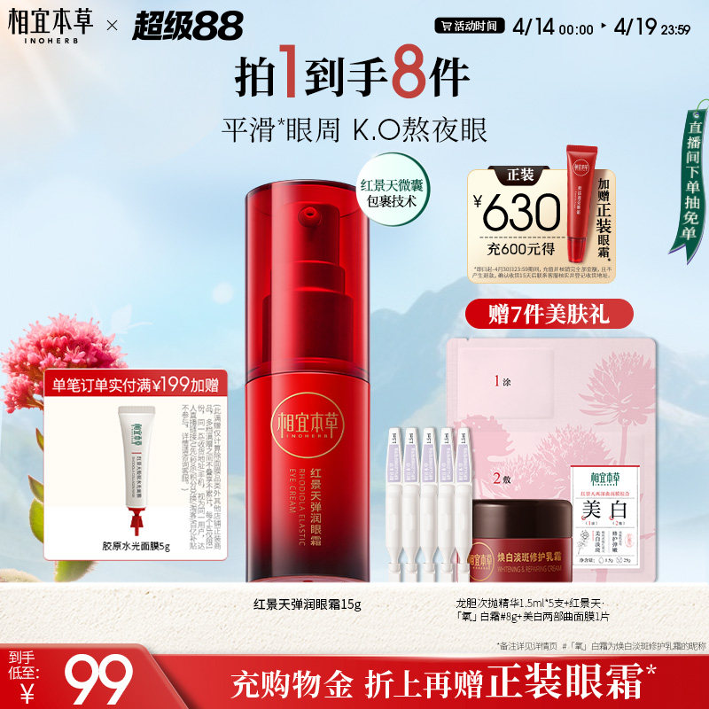 相宜本草红景天弹润眼霜 淡化细纹 弹嫩紧致保湿补水滋润眼霜正品