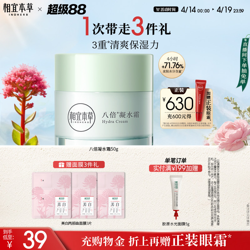 相宜本草八倍凝水霜清爽补水保湿面霜易吸收不粘腻官方期间店正品