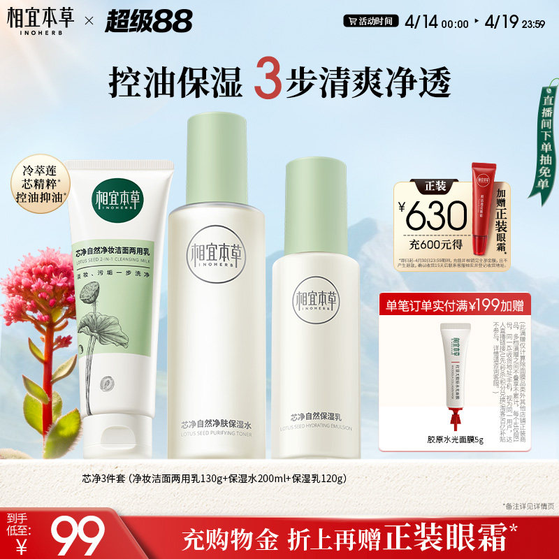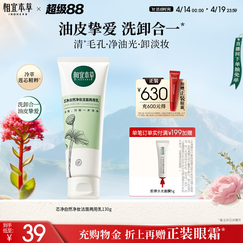 相宜本草芯净自然洁面乳女士卸妆清洁两用男士去油控油专用洗面奶
