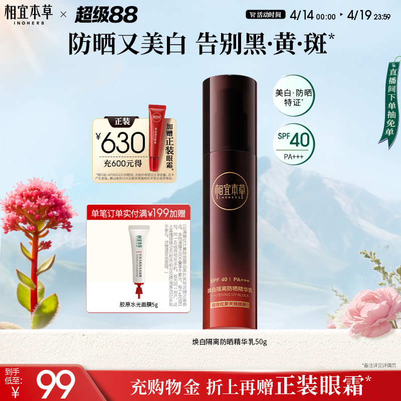 相宜本草焕白隔离防晒精华乳液淡斑美白隔离防晒乳官方旗舰店正品