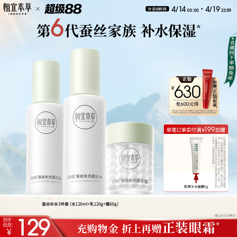 相宜本草四倍蚕丝护肤套组深层补水保湿水乳护肤品官方旗舰店正品