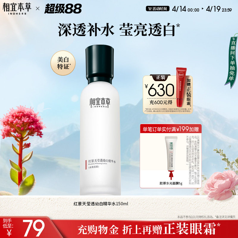 相宜本草红景天莹透幼白精华水补水保湿美白淡斑护肤水爽肤水正品