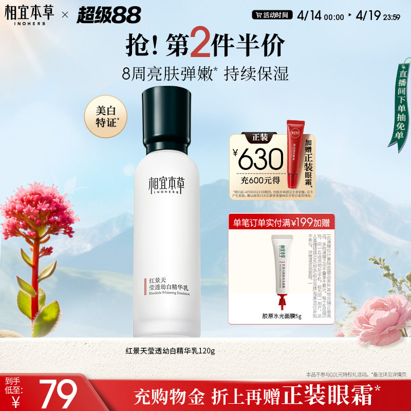 相宜本草红景天莹透幼白精华乳美白祛斑提亮去黄保湿补水锁水乳液