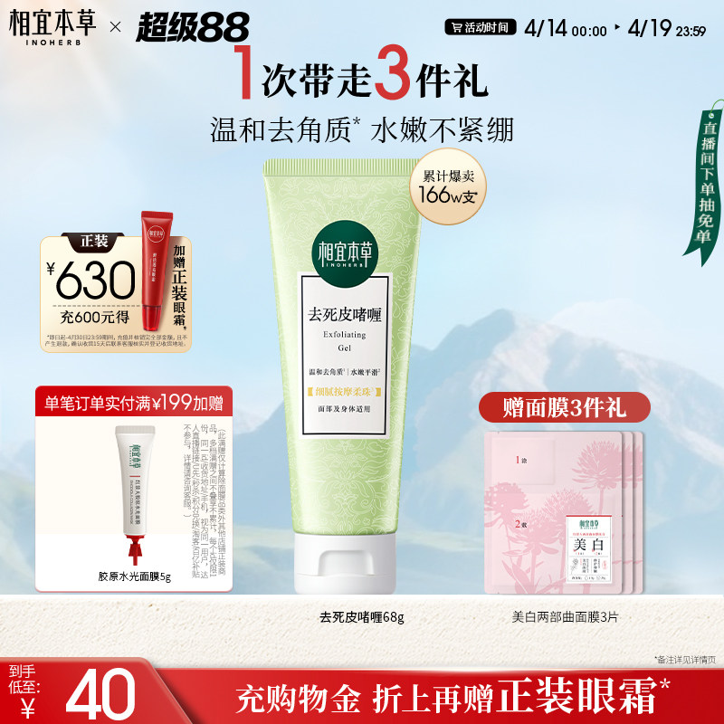 下拉领补贴丨相宜本草去死皮膏啫喱去角质清爽嫩滑深入清洁不紧绷