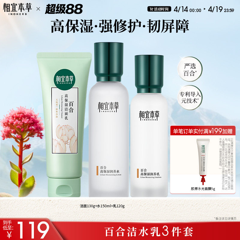 相宜本草百合高保湿护肤套装清爽润养补水修护滋润水乳护肤品正品
