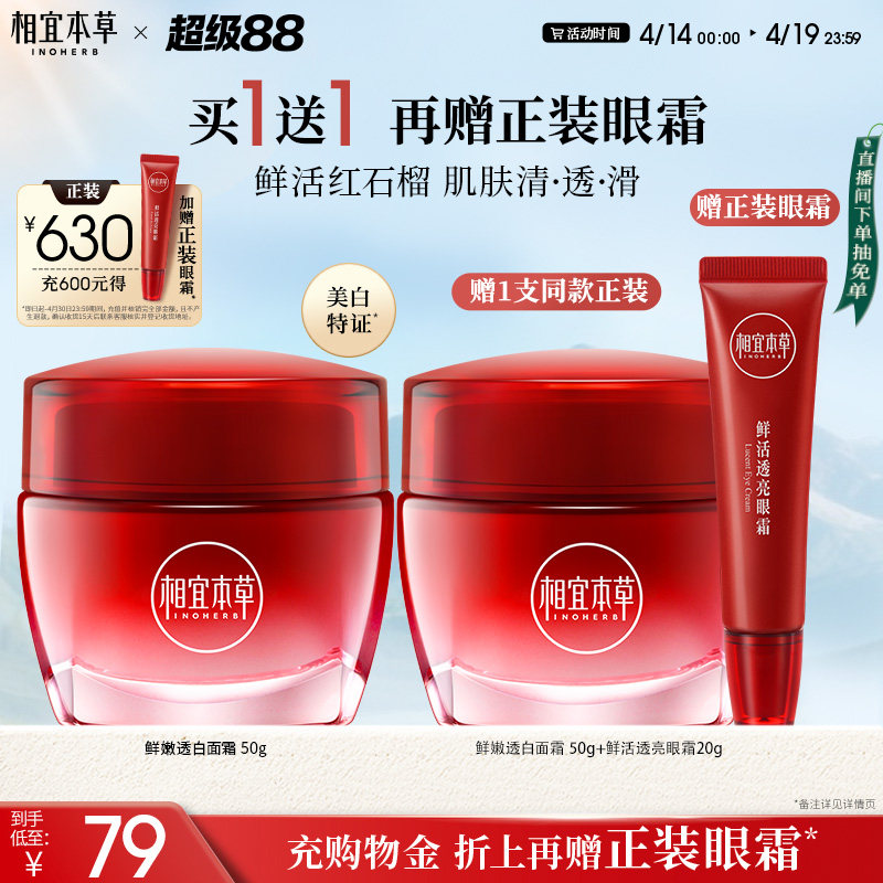 【不限购】相宜本草红石榴鲜嫩透白面霜补水保湿清爽春夏护肤乳霜