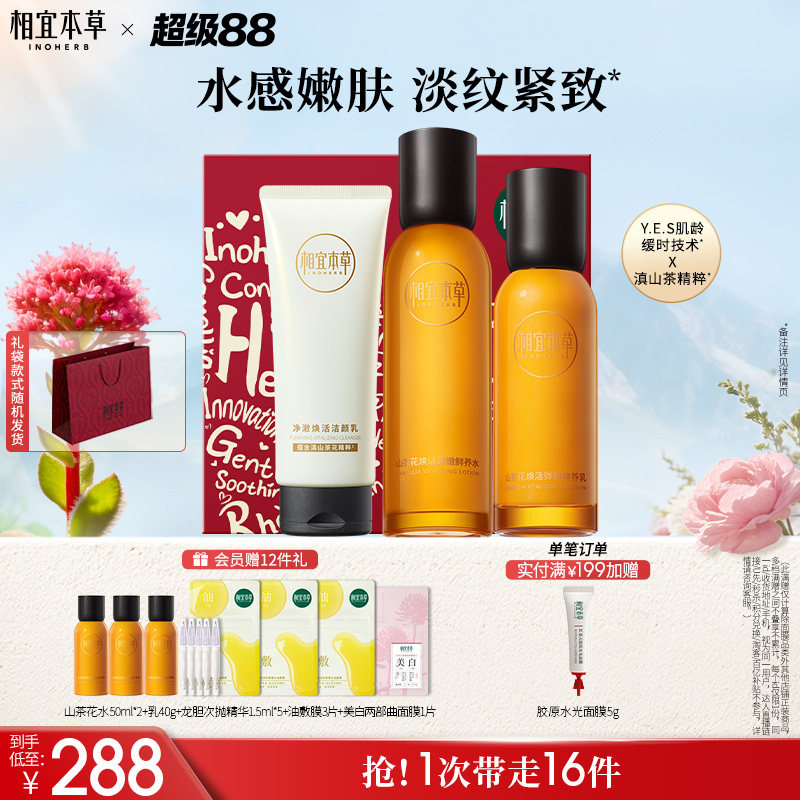 【母亲节礼物】相宜本草山茶花焕活水乳精华套装紧致抗初老护肤品