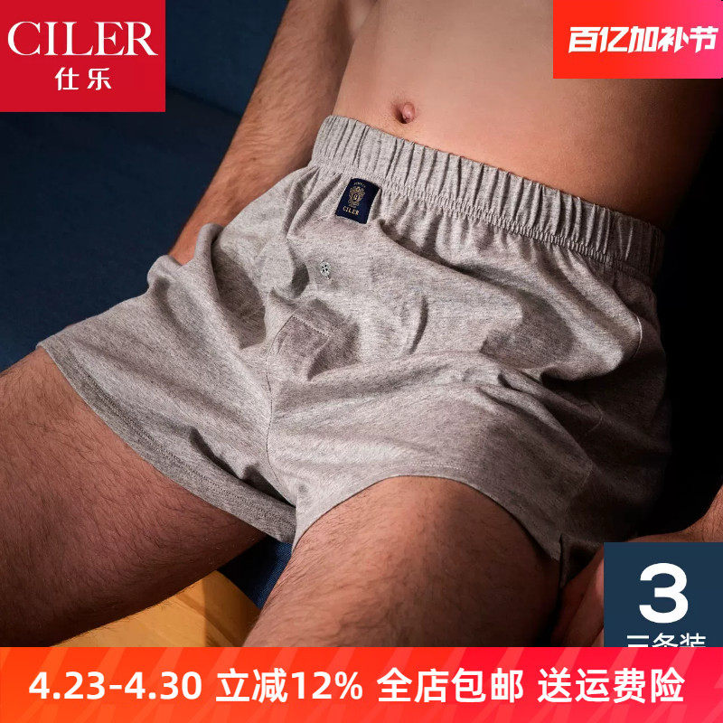 3条仕乐全棉夏薄男士内裤男平角裤头宽松大码四角短裤纯棉阿罗裤