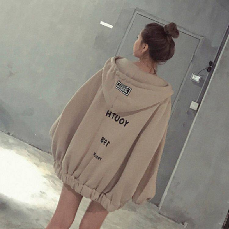 ins外套慵懒风时尚卫衣女加厚加绒秋冬季原宿风bf学生连帽外套潮