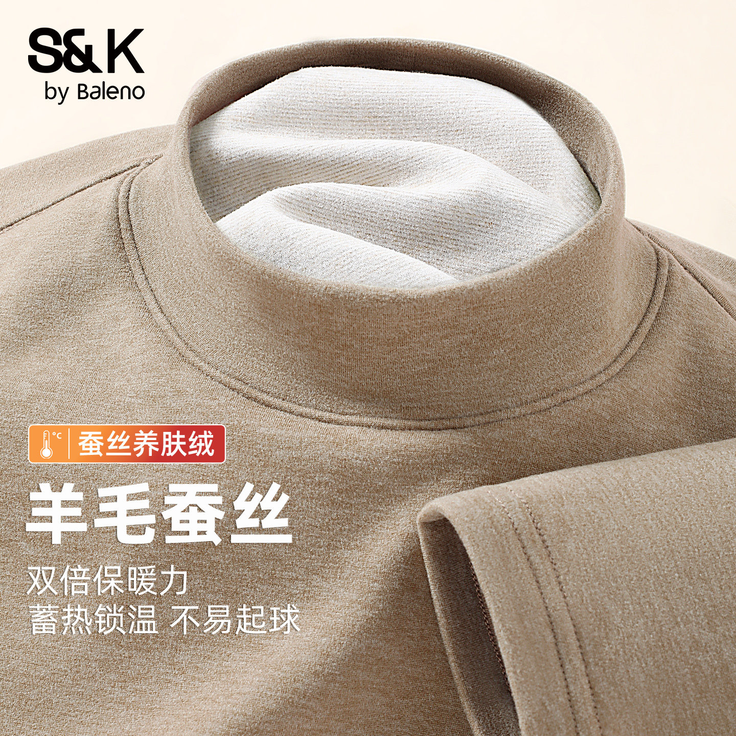班尼路S&K羊毛蚕丝内搭男生打底衫冬季半高领绒德保暖秋衣男款潮Y