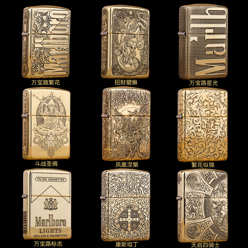 正版zippo 打火机黄铜盔甲五面万宝路 斗战胜佛浮雕唐草男士礼物