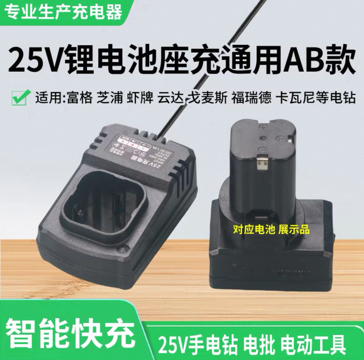 25V手电钻电池充电器龙韵富格Habao手枪钻座充充电器通用充电器
