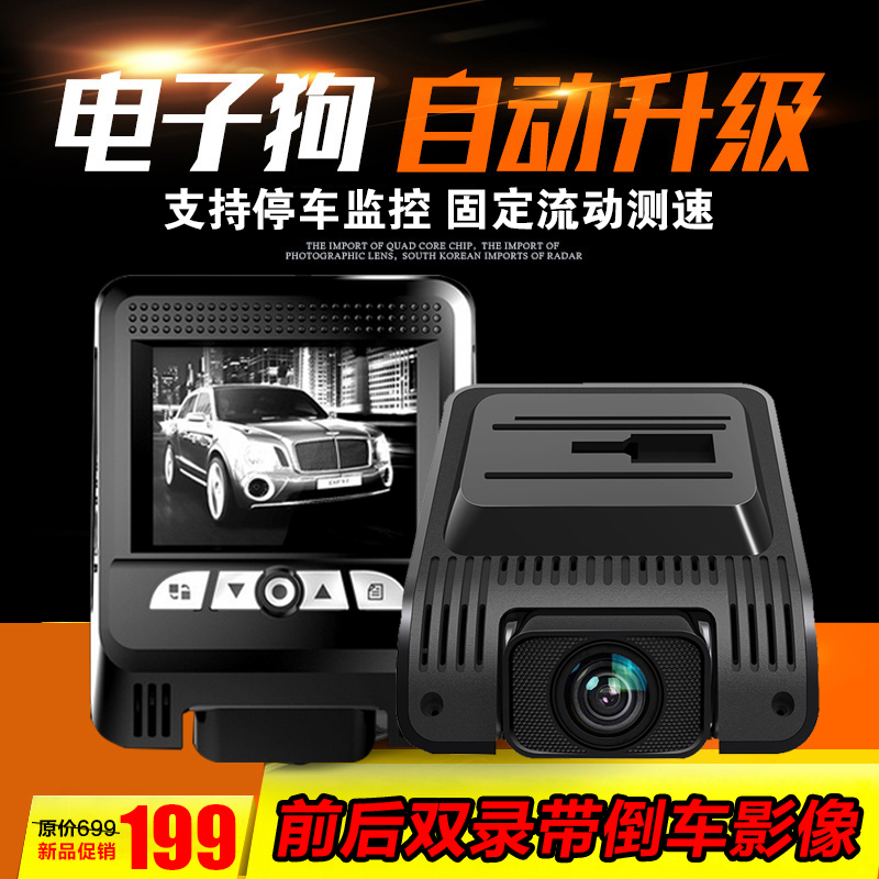新款双镜头高清夜视汽车载行车记录仪云自动升级电子狗测速一体机