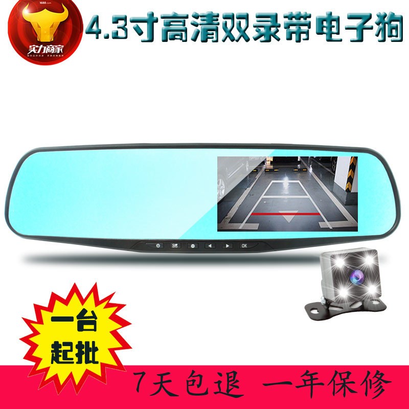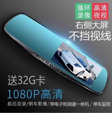高清4.3寸后视镜行车记录仪双镜头倒车影像电子狗一体机1080P