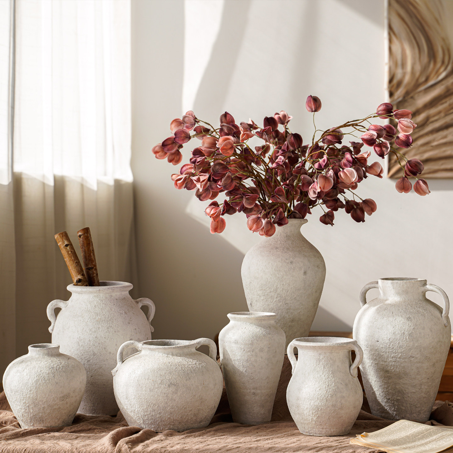 陶瓷花瓶侘寂风高级感法式复古陶罐客厅插花干花芍药餐桌装饰摆件