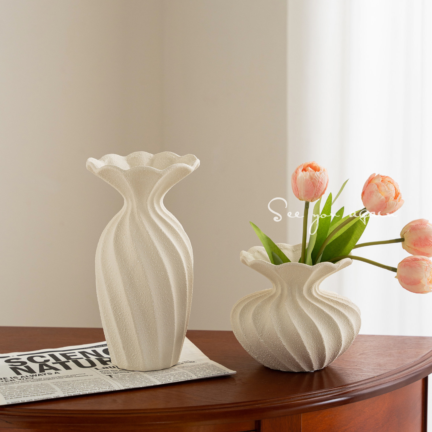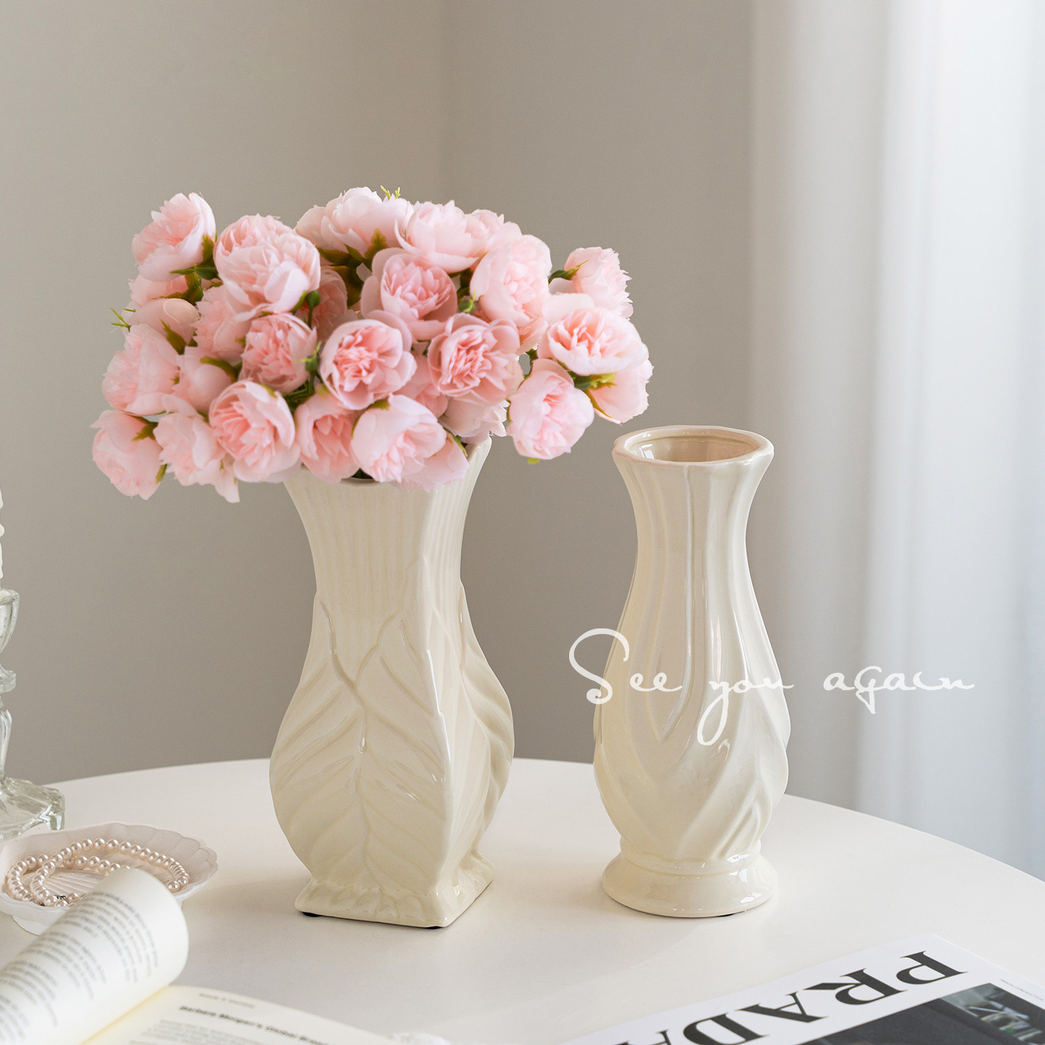 简约现代高级感白色奶油风花瓶陶瓷客厅餐厅水培插花鲜花装饰摆件