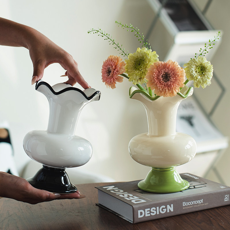 法式简约现代奶油风陶瓷花瓶复古水培插花高级感客厅餐桌装饰花器