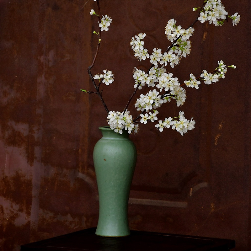 绿色花瓶陶瓷花器梅瓶中式鲜花水培大口径复古仿真手工花水养大号