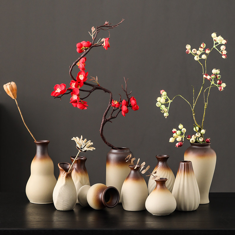禅意粗陶花瓶陶瓷仿柴烧装饰客厅家居桌面摆件器皿创意绿萝小花器