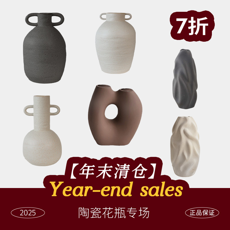侘寂风花瓶陶瓷高级感陶罐复古粗陶玄关摆件新款客厅干花水培插花