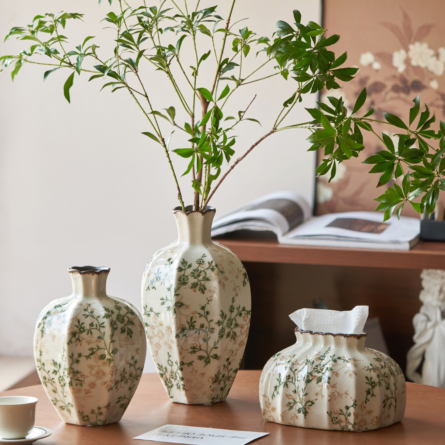 繁花陶瓷花瓶迷你型复古水养绿萝植物鲜花插花小摆件客厅美式乡村