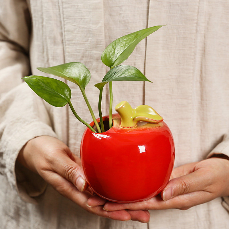 创意苹果花瓶陶瓷水养绿萝客厅桌面办公桌装饰品摆件水培花盆花器