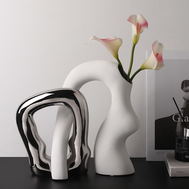 轻奢抽象曲面花瓶陶瓷水养北欧现代创意客厅餐桌干花插花装饰摆件