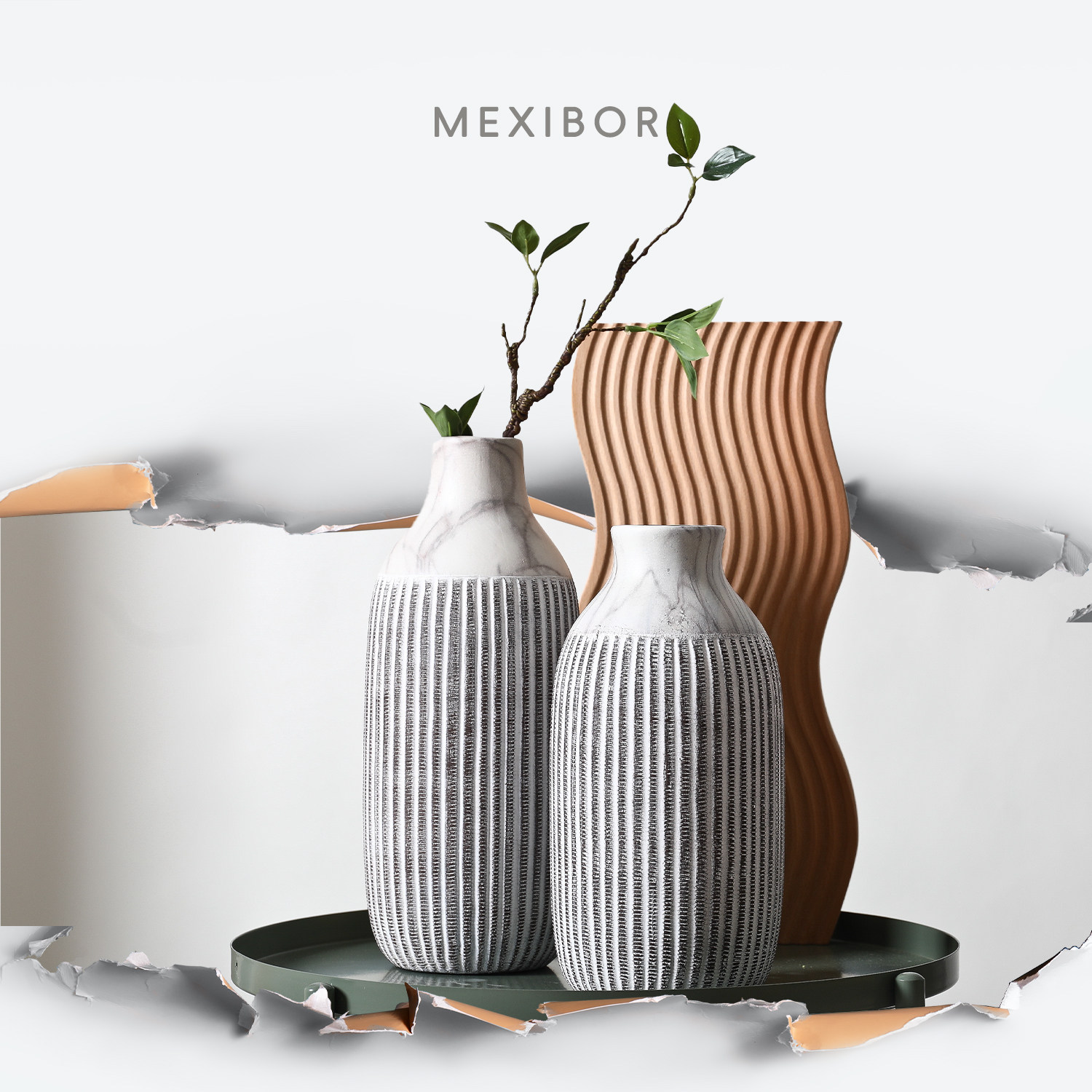 高级感木底高脚花瓶陶瓷摆件北欧客厅餐桌水养鲜花插花小众装饰品