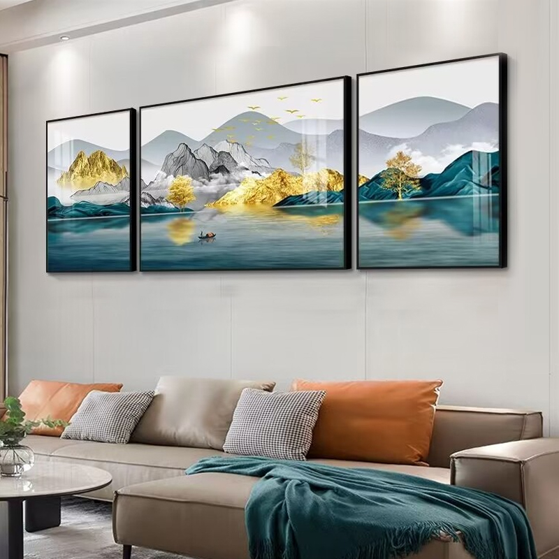 背靠金山客厅装饰画现代简约三联画沙发背景墙挂画轻奢山水晶瓷画
