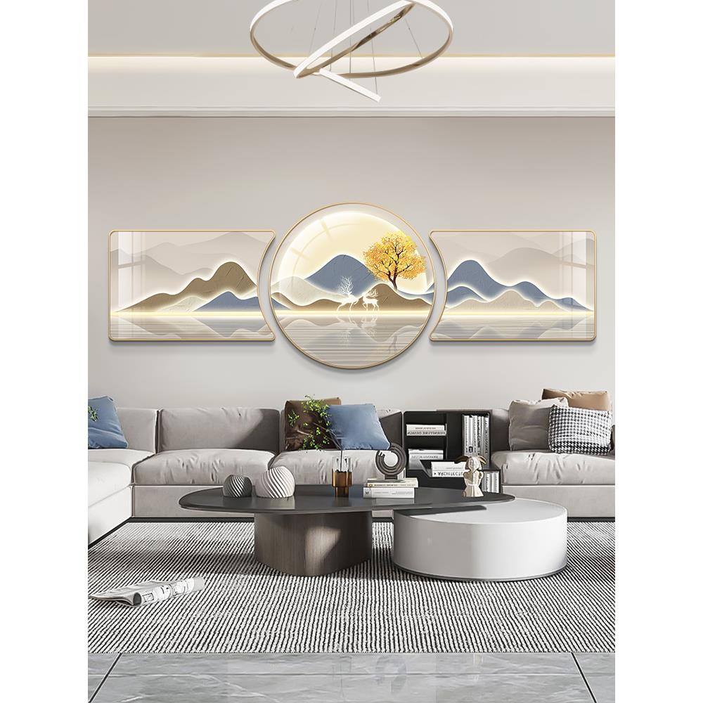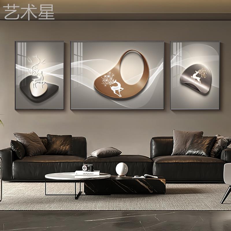 麋鹿客厅装饰画三联画沙发背景墙挂画现代简约轻奢高档壁画2025