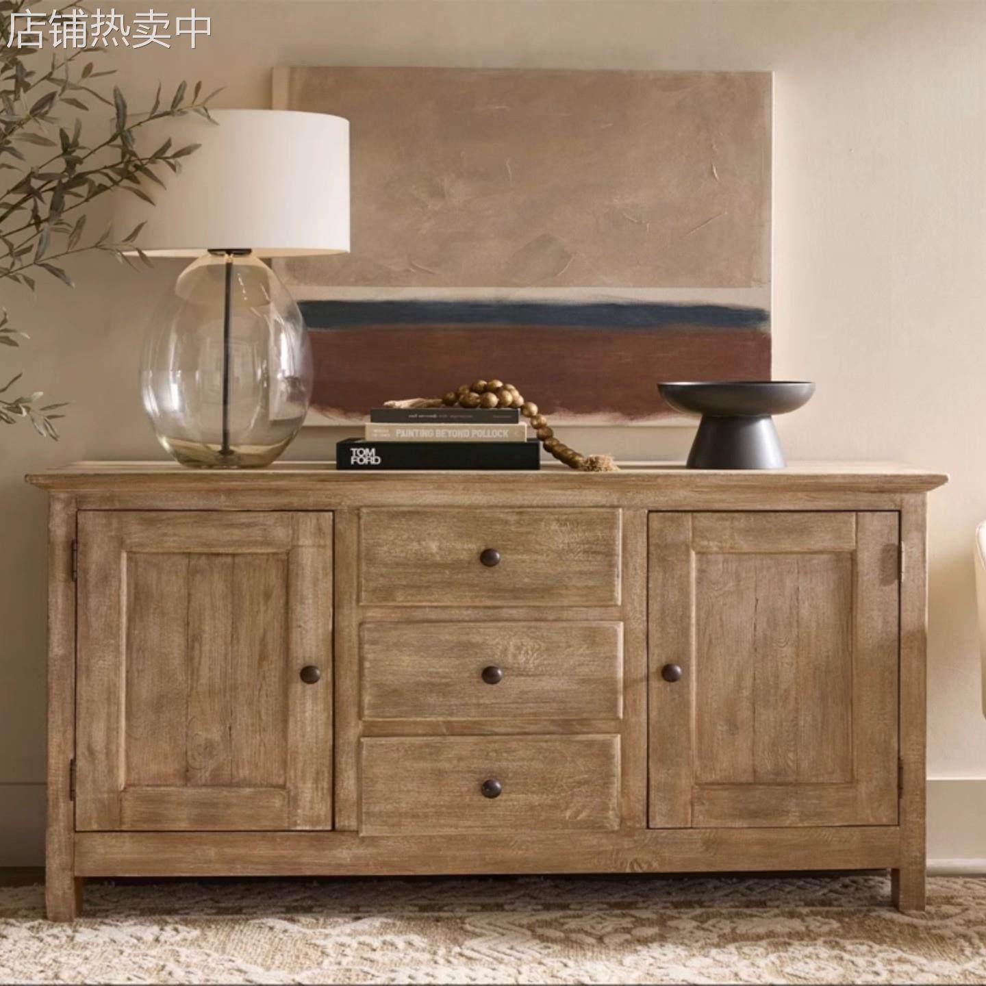 美式乡村实木餐边柜客厅玄关柜复古茶水柜民宿怀旧储物收纳装饰柜