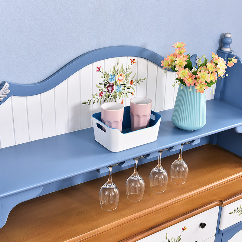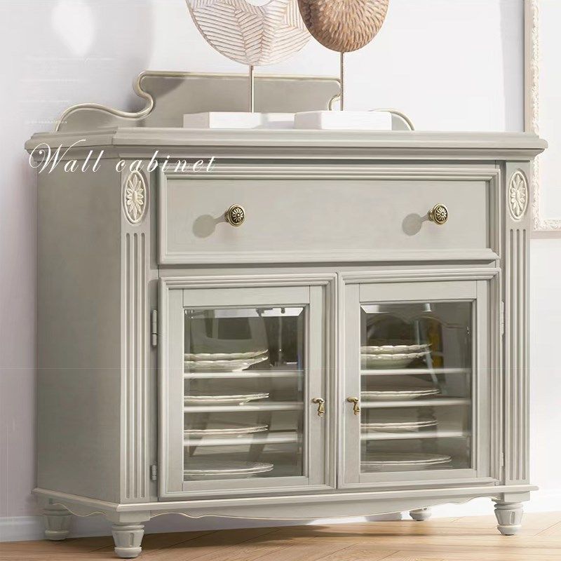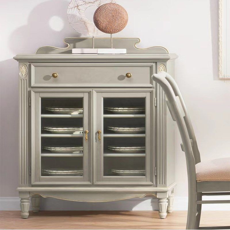美式乡村实木餐边柜灰蓝色涂装法式简约客厅家用收纳储物酒柜整装