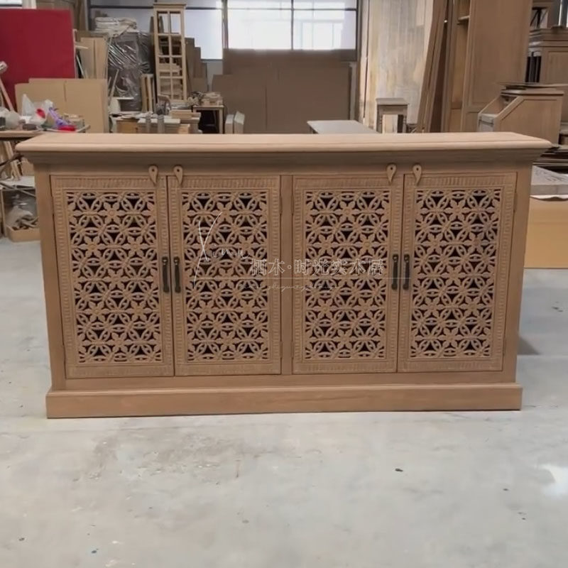 美式乡村餐边柜复古实木储物柜影楼民宿置物柜复古原木碗碟茶水柜