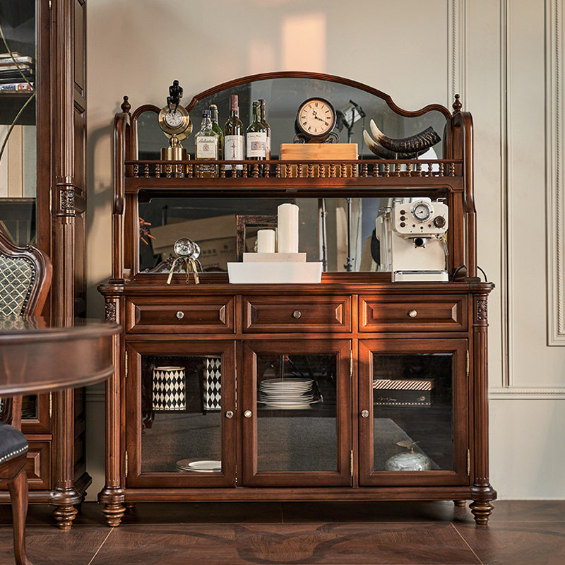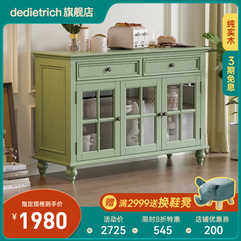 美式餐边柜子实木乡村欧式复古典厨房餐厅酒柜茶水储物收纳玻璃门
