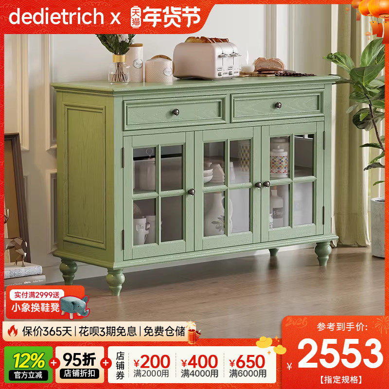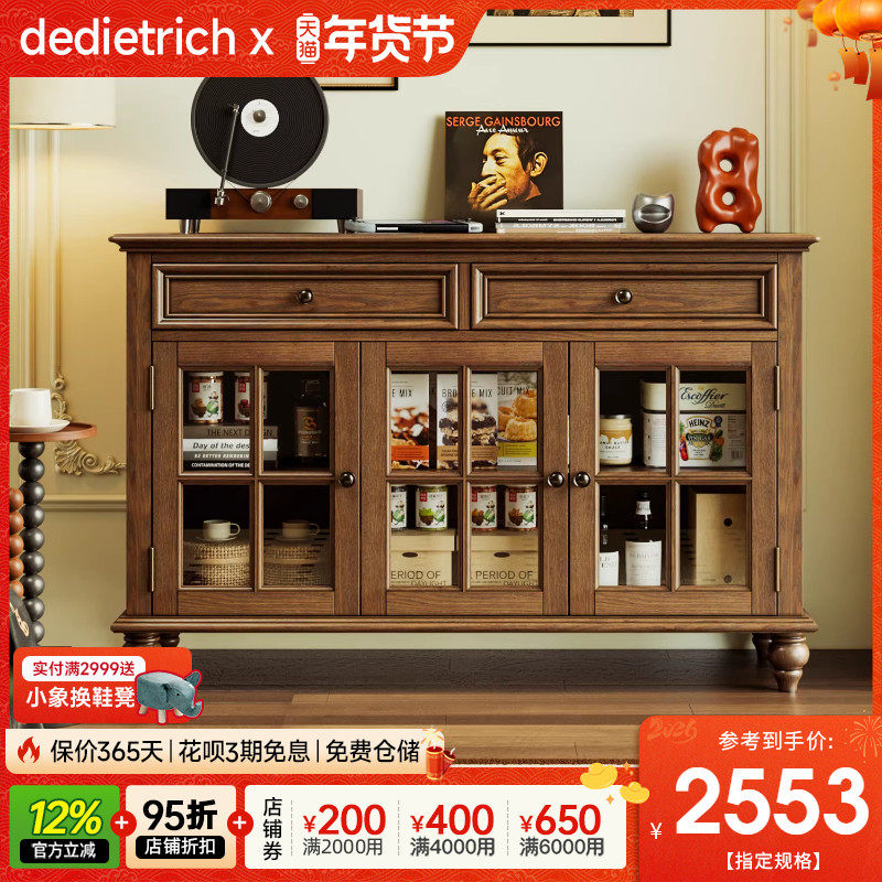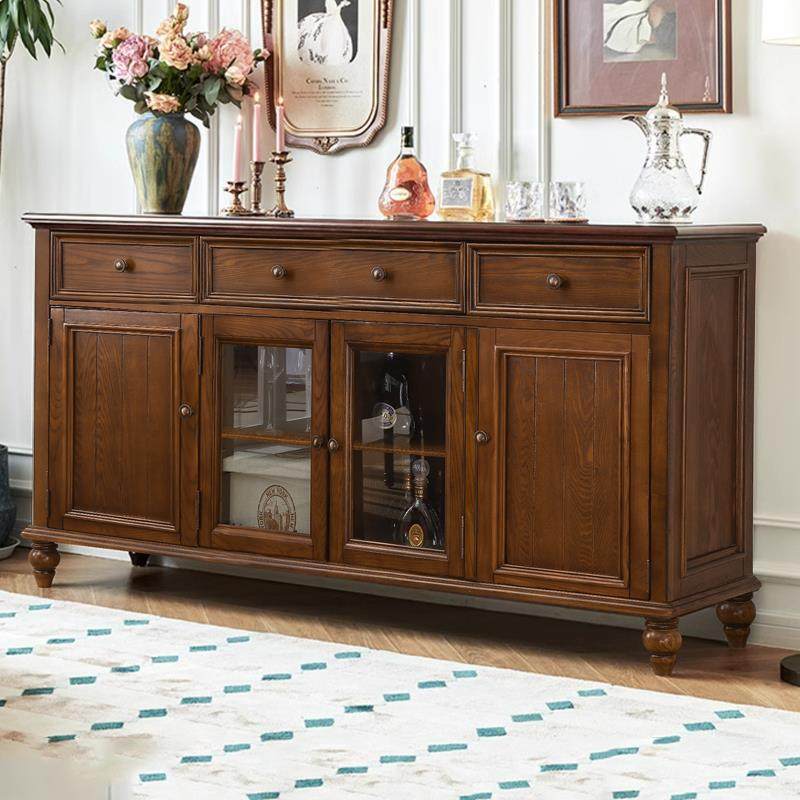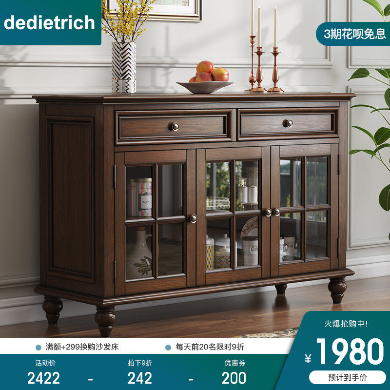 美式复古餐边柜乡村实木轻奢柜子中古风靠墙一体边柜储物柜过道柜