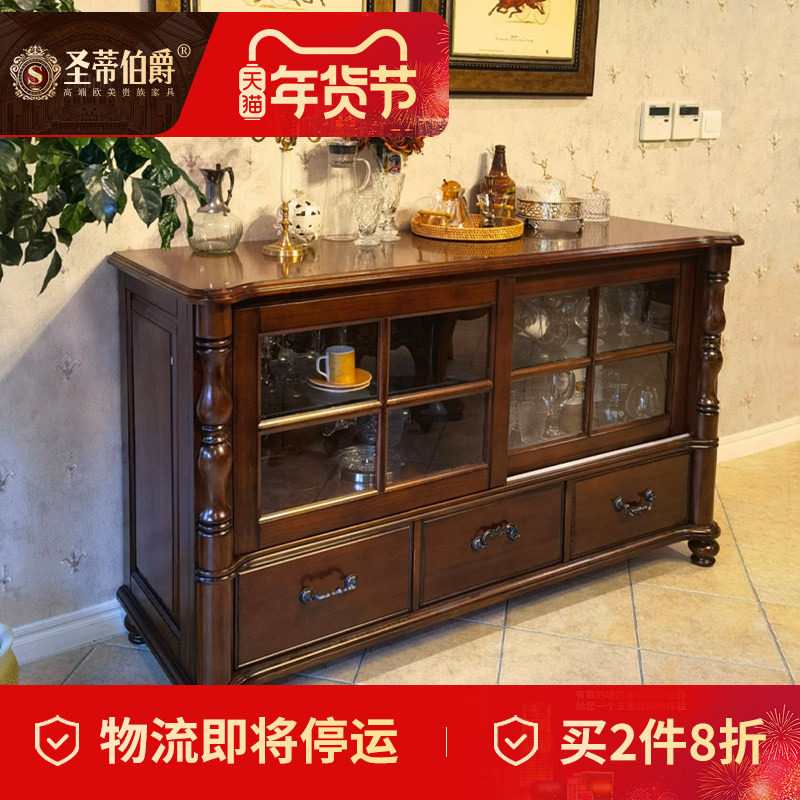 圣蒂伯爵 美式复古乡村储物柜实木餐边柜家用茶水柜碗柜餐厅组合