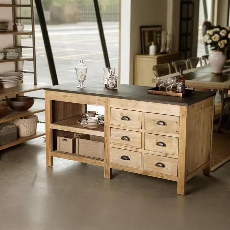 厨房中岛台实木料理台开放式餐边柜复古家用操作台美式乡村餐桌柜