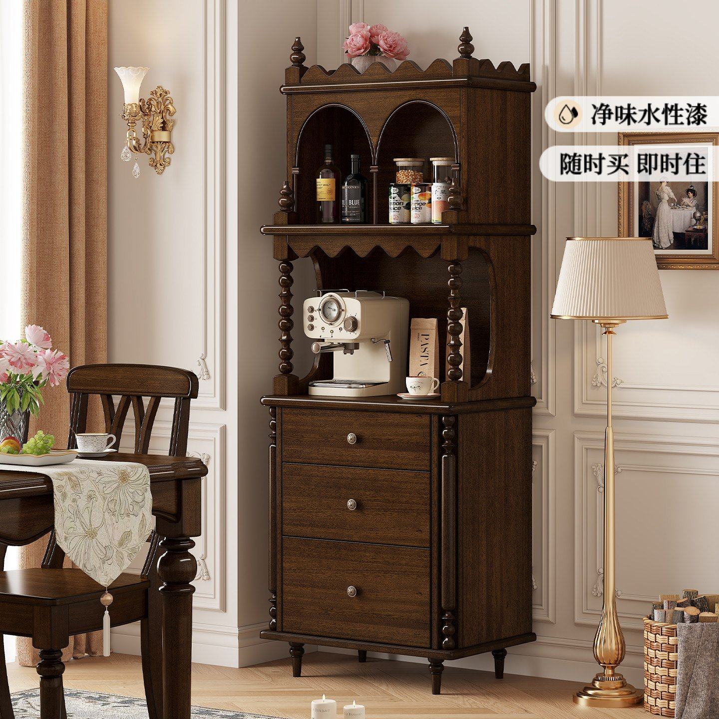 餐边柜美式实木收纳储物柜小户型复古乡村茶水柜家用老钱风置物柜