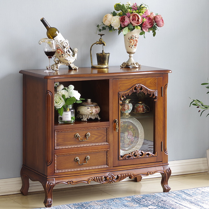 美式乡村复古客厅实木雕花餐边柜法式做旧玄关柜装饰柜靠墙储物柜