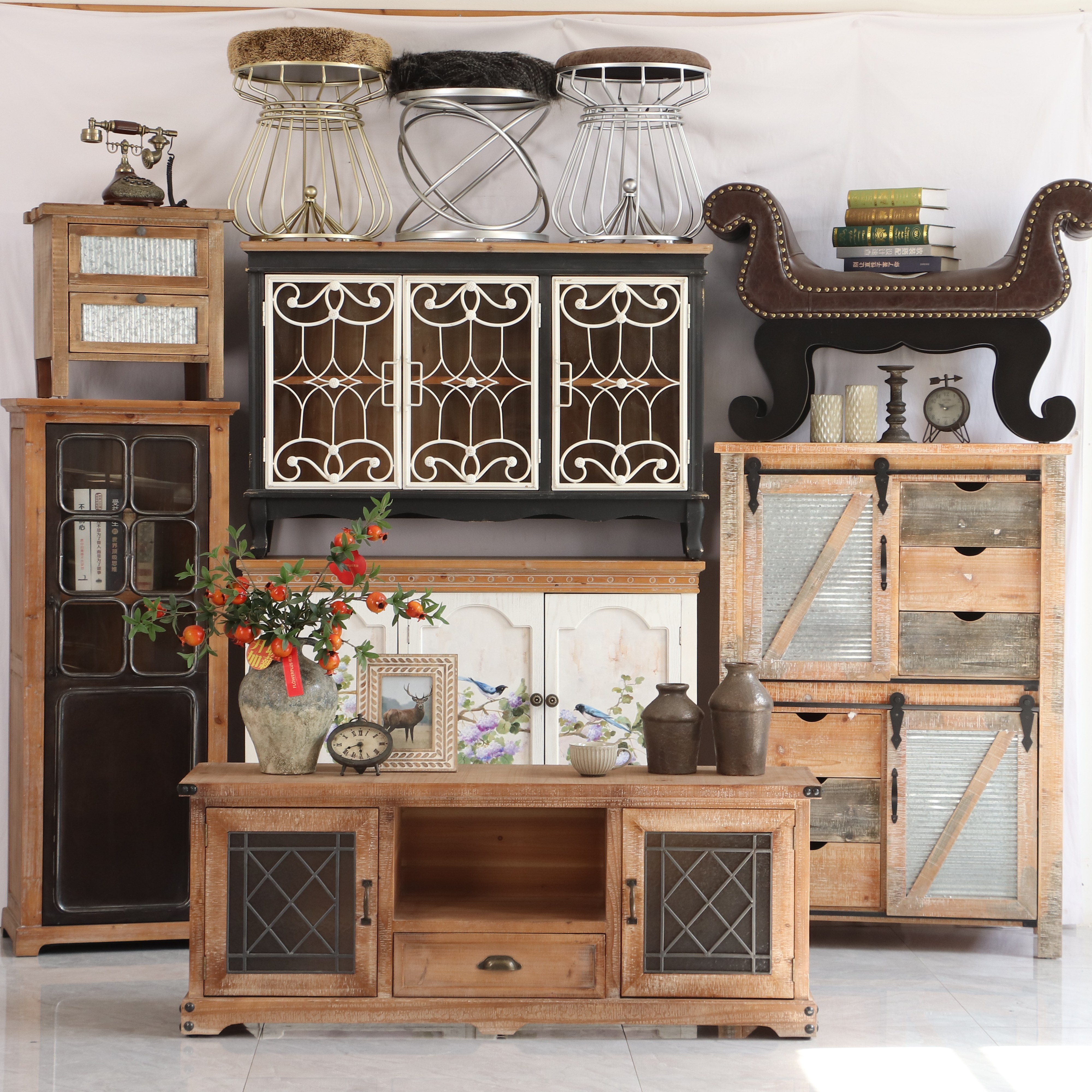 美式乡村复古铁艺餐边柜镂空置物柜简约现代储物柜玄关柜收纳碗柜