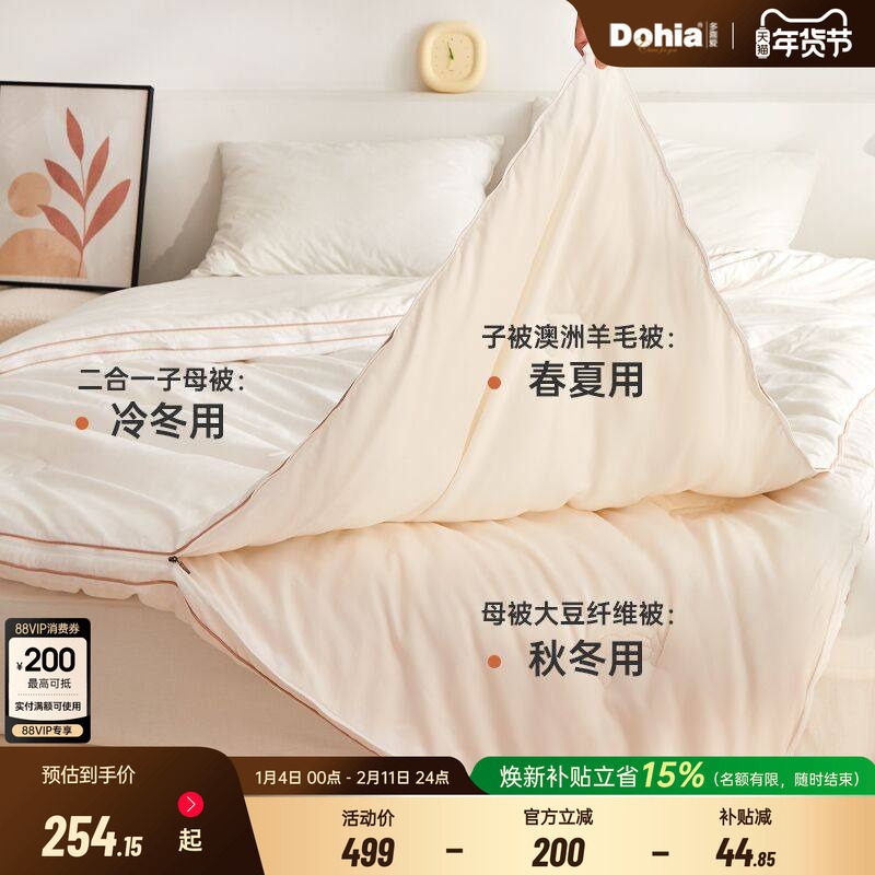 多喜爱蚕丝澳洲羊毛子母被二合一春秋被冬被拉链蚕丝被子被芯学生