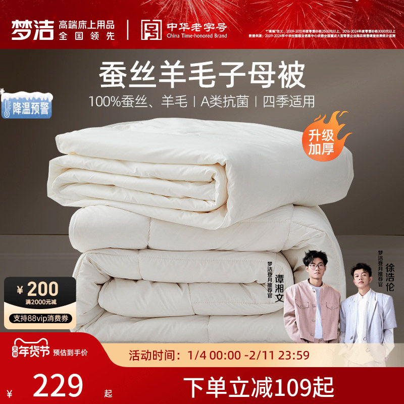 梦洁子母被蚕丝羊毛二合一被子被芯澳洲进口抗菌春秋被冬被结婚被