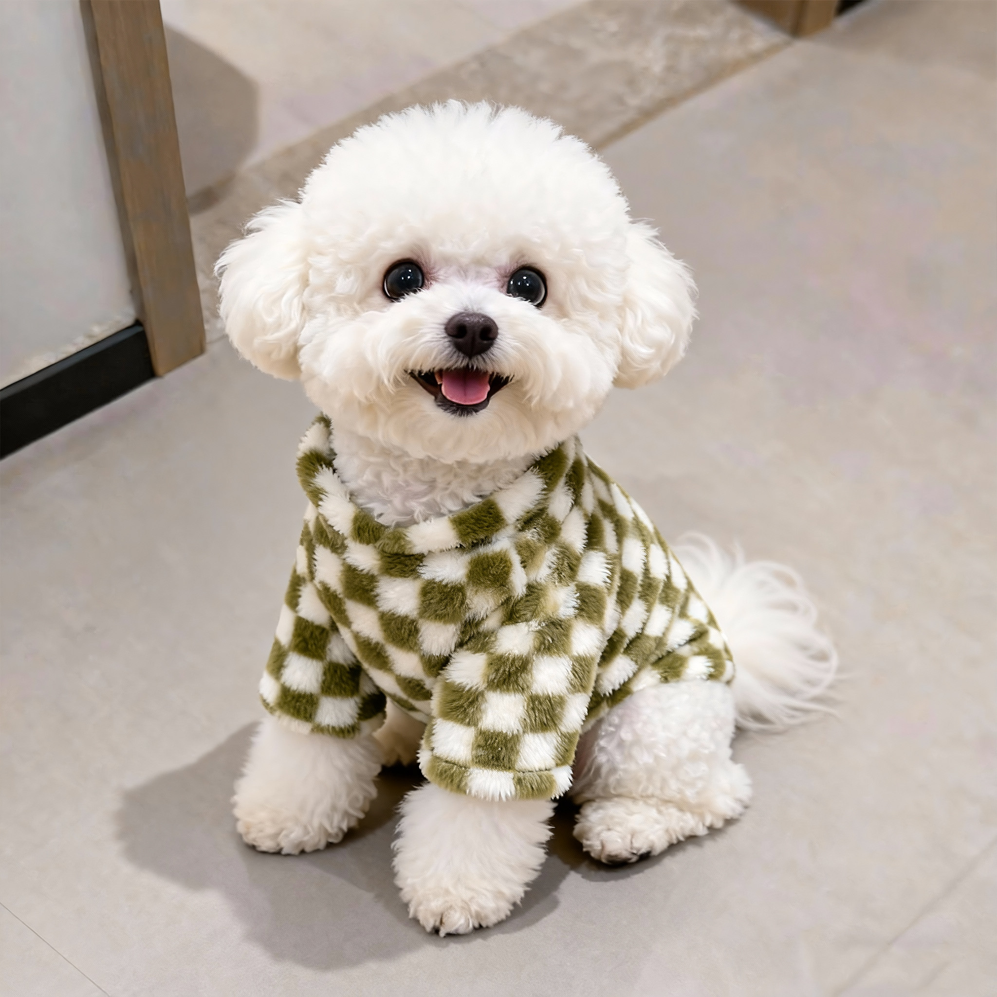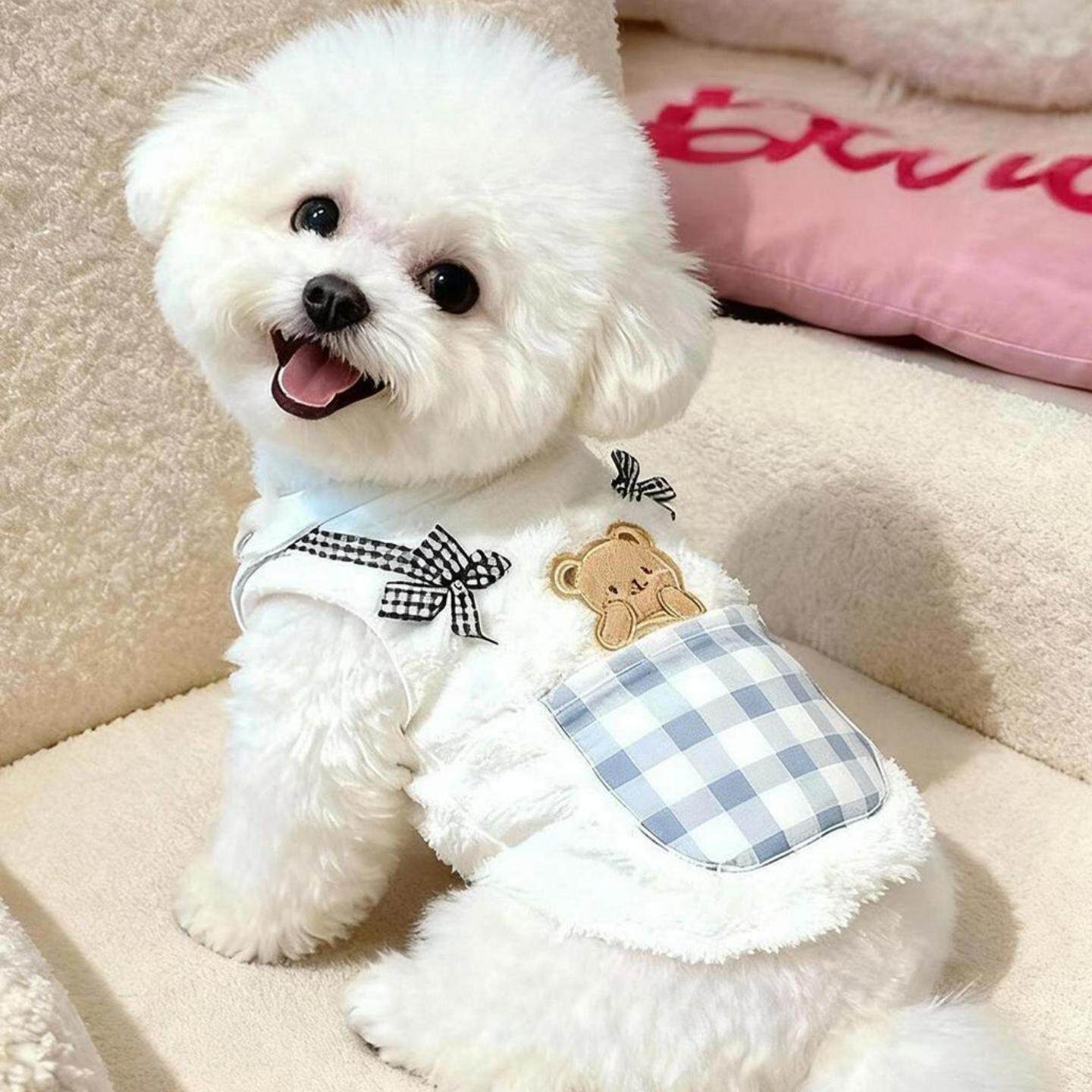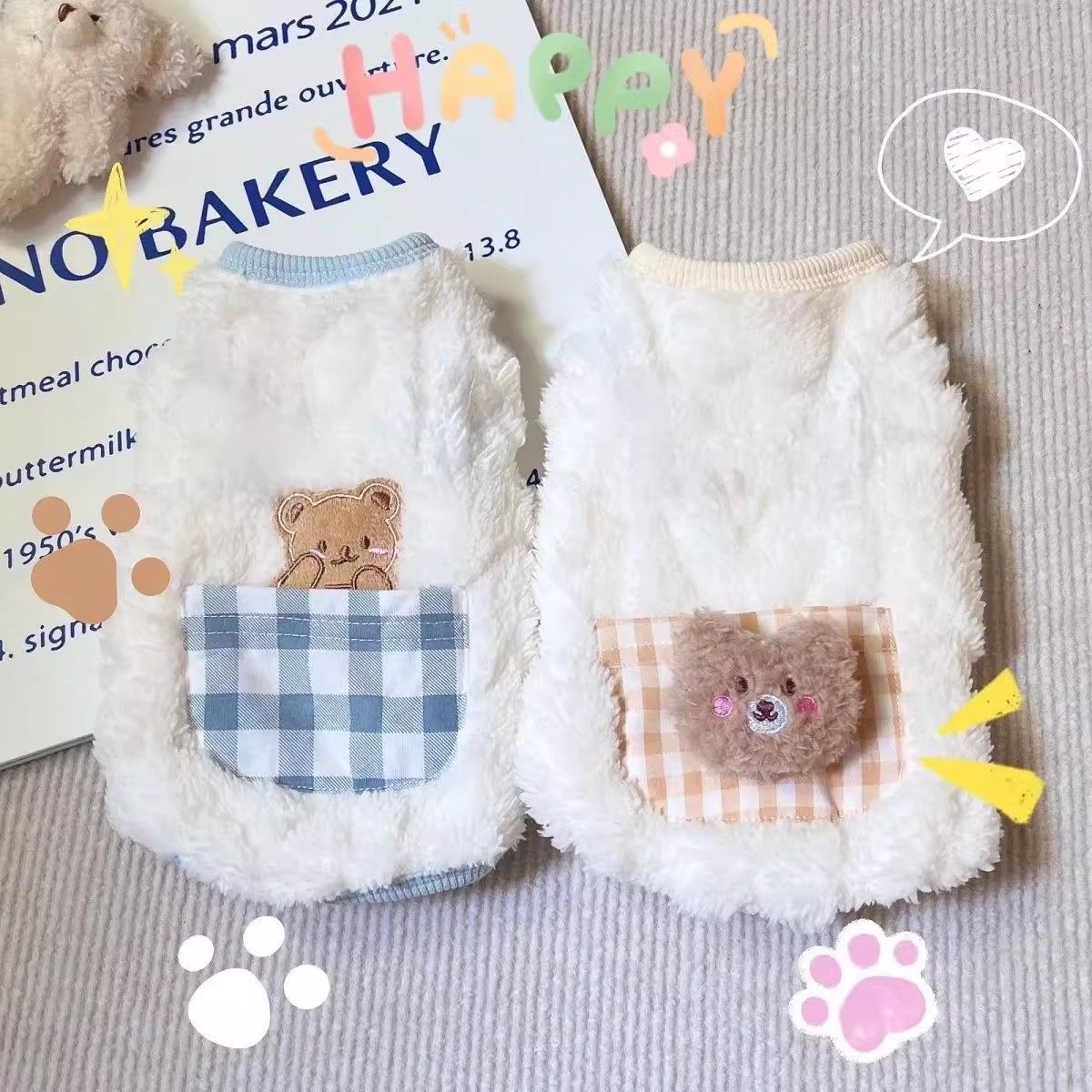 HC原创小熊卫衣格纹狗狗羊羔绒背心冬季保暖绒绒宠物服装猫咪卫衣