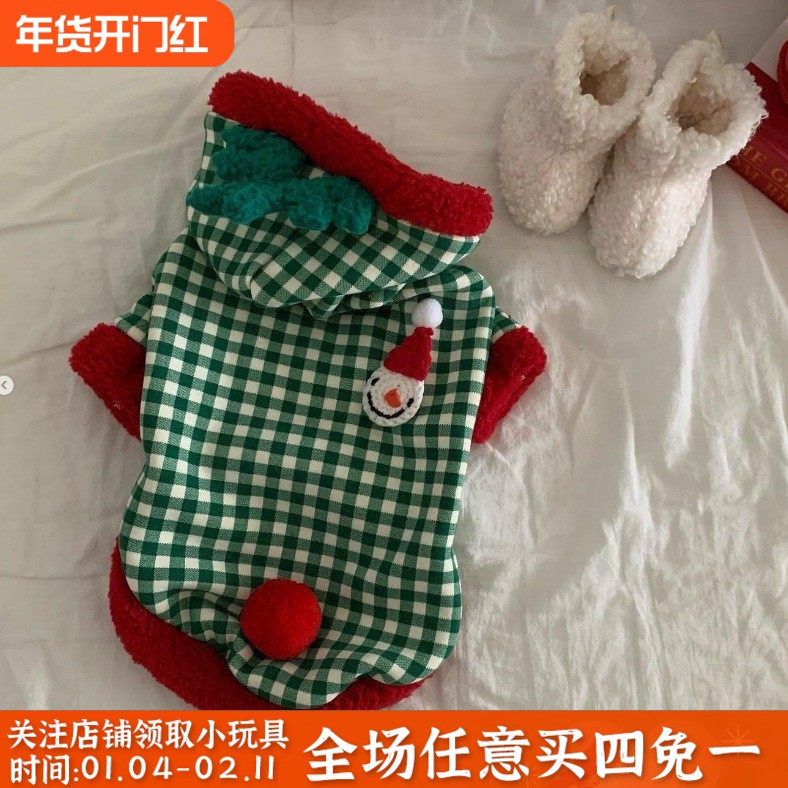 狗狗圣诞衣服可爱麋鹿猫咪卫衣连帽秋冬保暖加绒中小型犬宠物裙子
