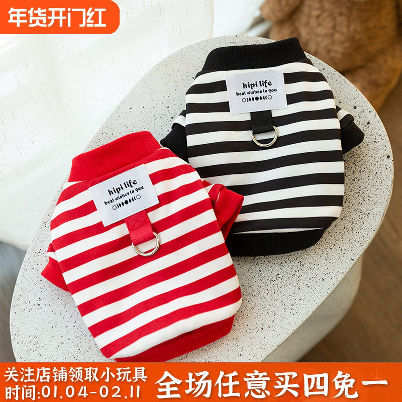 可牵引狗狗衣服中小型犬猫咪卫衣春秋冬条纹泰迪比熊雪纳瑞两脚衣