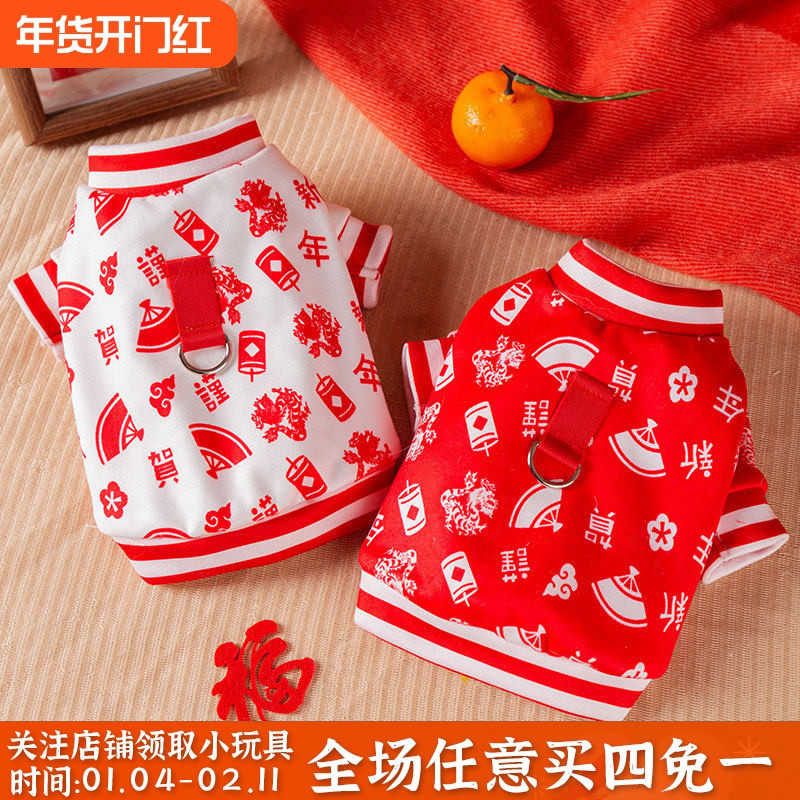 喜庆小狗狗衣服牵引新年猫咪卫衣可爱剪纸小型犬泰迪比熊两脚衣服